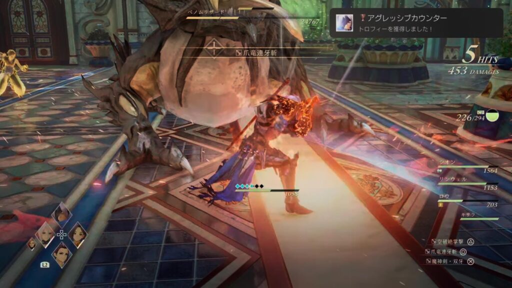 アライズのバトルはかなりアクション寄りで、回避・コンボ・ブーストアタックなどを駆使してテンポよく戦えます。敵の弱点を突いて一気に畳みかける流れが気持ちよく、「もう一戦いこうかな」となる中毒性があり、気付けば何分も何時間も戦闘をしてました!